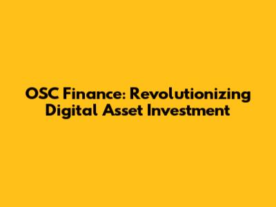 OSC Finance: Revolutionizing Digital Asset Investment