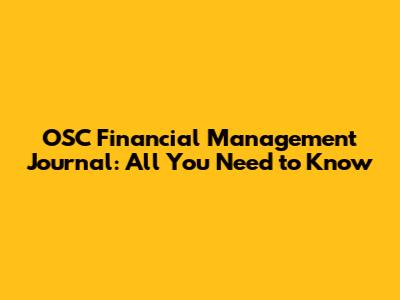 OSC Financial Management Journal: All You Need To Know