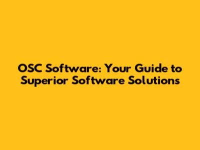 OSC Software: Your Guide To Superior Software Solutions