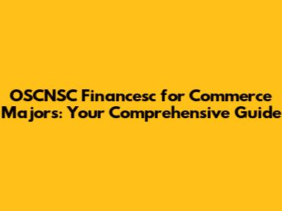 OSCNSC Financesc For Commerce Majors: Your Comprehensive Guide