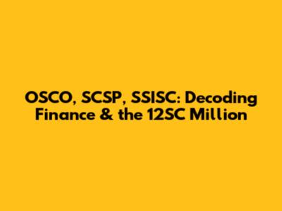 OSCO, SCSP, SSISC: Decoding Finance & The 12SC Million