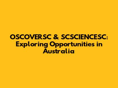 OSCOVERSC & SCSCIENCESC: Exploring Opportunities In Australia