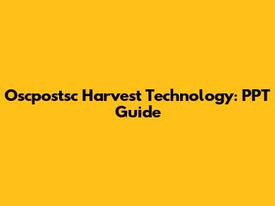 Oscpostsc Harvest Technology: PPT Guide