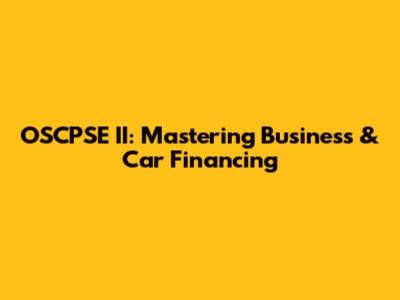 OSCPSE II: Mastering Business & Car Financing