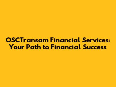 OSCTransam Financial Services: Your Path To Financial Success