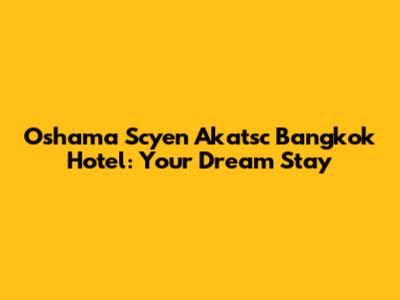Oshama Scyen Akatsc Bangkok Hotel: Your Dream Stay