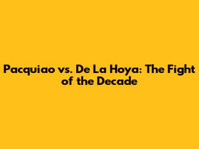 Pacquiao Vs. De La Hoya: The Fight Of The Decade
