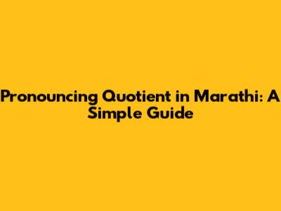 Pronouncing Quotient In Marathi: A Simple Guide