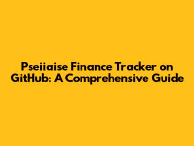 Pseiiaise Finance Tracker On GitHub: A Comprehensive Guide