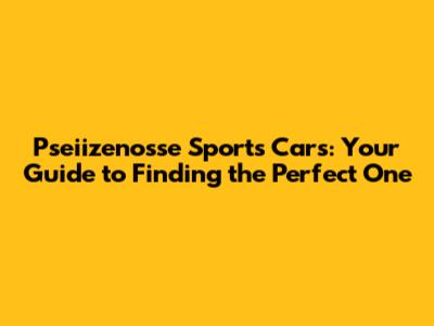 Pseiizenosse Sports Cars: Find Your Dream Ride