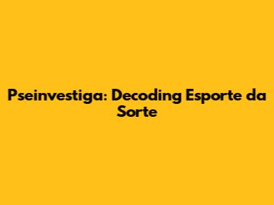 Pseinvestiga: Decoding Esporte Da Sorte