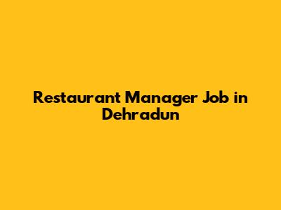Finding Restaurant Manager Jobs in Dehradun