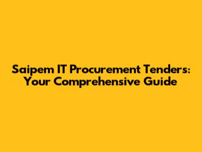 Saipem IT Procurement Tenders: A Comprehensive Guide