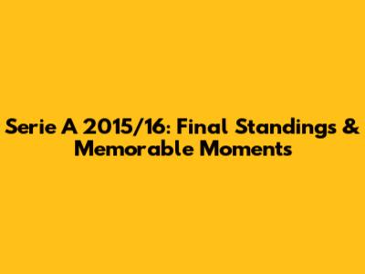 Hey guys! Let's rewind to the 2015/16 season of Serie A, a year filled with drama, stunning goals, and unforgettable moments. We'll dive into the final standings of the Italian football league, relive some of the most exciting matches, and remember the key players who lit up the pitch. Buckle up, because we're about to take a trip down memory lane, celebrating the teams and stars that made this season so special. This season was more than just a competition; it was a story of passion, rivalry, and sheer footballing brilliance. From Juventus's dominance to the surprising performances of other teams, every match day brought its own set of surprises and delights. The race for the top spots kept fans on the edge of their seats, while the battles against relegation were equally intense. So, let's get into the nitty-gritty and see how the season unfolded, looking at the triumphs, heartbreaks, and everything in between that defined the 2015/16 Serie A campaign.
