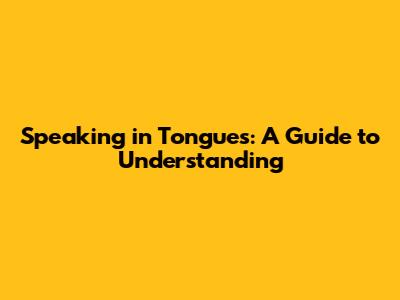 Speaking In Tongues: A Guide To Understanding