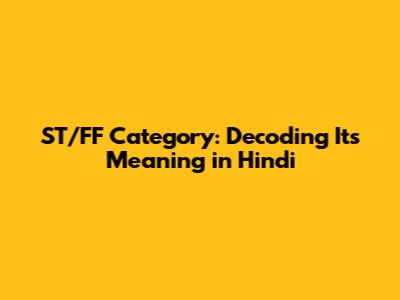 ST/FF Category: Unpacking The Meaning In Hindi