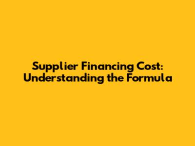 Supplier Financing Cost: Understanding The Formula