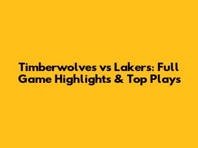 Timberwolves Vs Lakers: Full Game Highlights & Top Plays