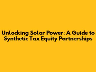 Unlocking Solar Power: A Guide To Synthetic Tax Equity Partnerships
