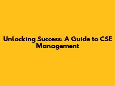 Unlocking Success: A Guide To CSE Management