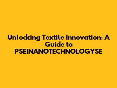 Unlocking Textile Innovation: A Guide To PSEINANOTECHNOLOGYSE