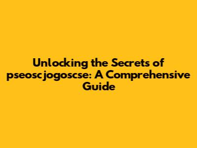 Unlocking The Secrets Of Pseoscjogoscse: A Comprehensive Guide