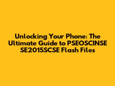 Unlocking Your Phone: The Ultimate Guide To PSEOSCINSE SE2015SCSE Flash Files