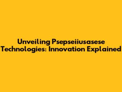 Unveiling Psepseiiusasese Technologies: Innovation Explained