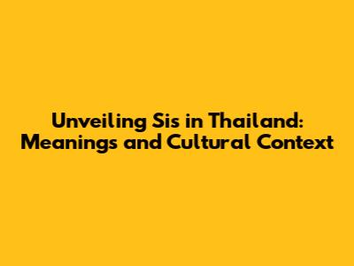 Unveiling 'Sis' In Thailand: Meanings And Cultural Context