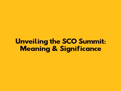 Unveiling The SCO Summit: Meaning & Significance