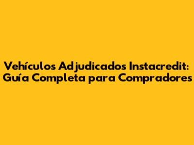 Vehículos Adjudicados Instacredit: Guía Completa Para Compradores