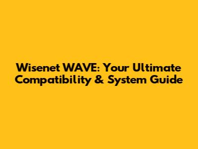 Wisenet WAVE: Camera Compatibility & System Guide